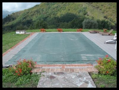 La MMP propone anche l'acquisto dei comodi e utilissimi teli di copertura per piscine. Ogni telo verrà fatto su misura ed esigenza del cliente. I teli possono essere a doppio strato di polietilene e la colorazione è classica con l'abbinamento verde/nero per evitare il passaggio della luce che creerebbe nel tempo la formazione di alghe e muffe.